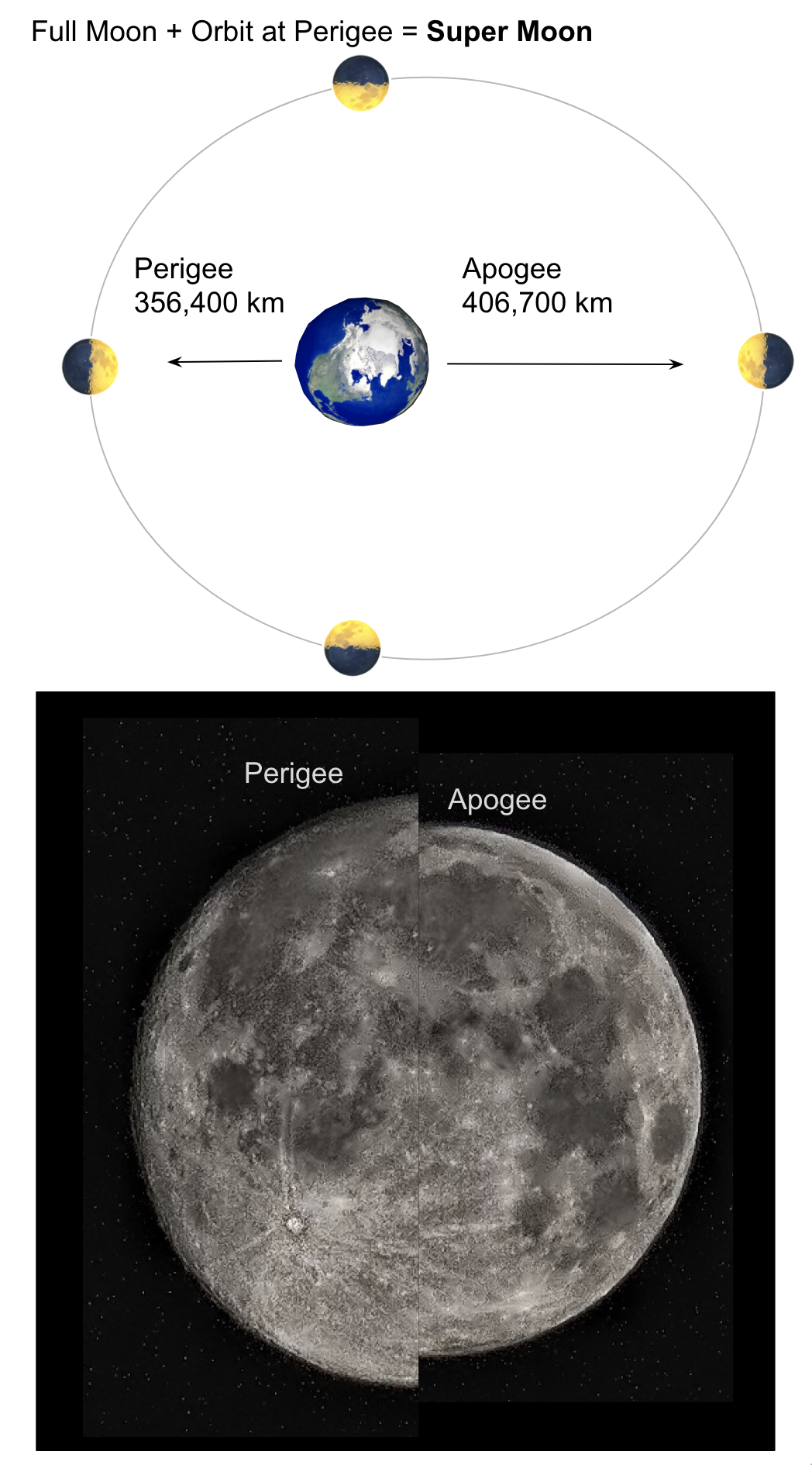 However, it is not always the same half that we are looking at from Earth. The Moon shows us only part of its bright side for most of its 29.5 day orbit. It’s only during the Full Moon that we see the entire “half” illuminated Moon.