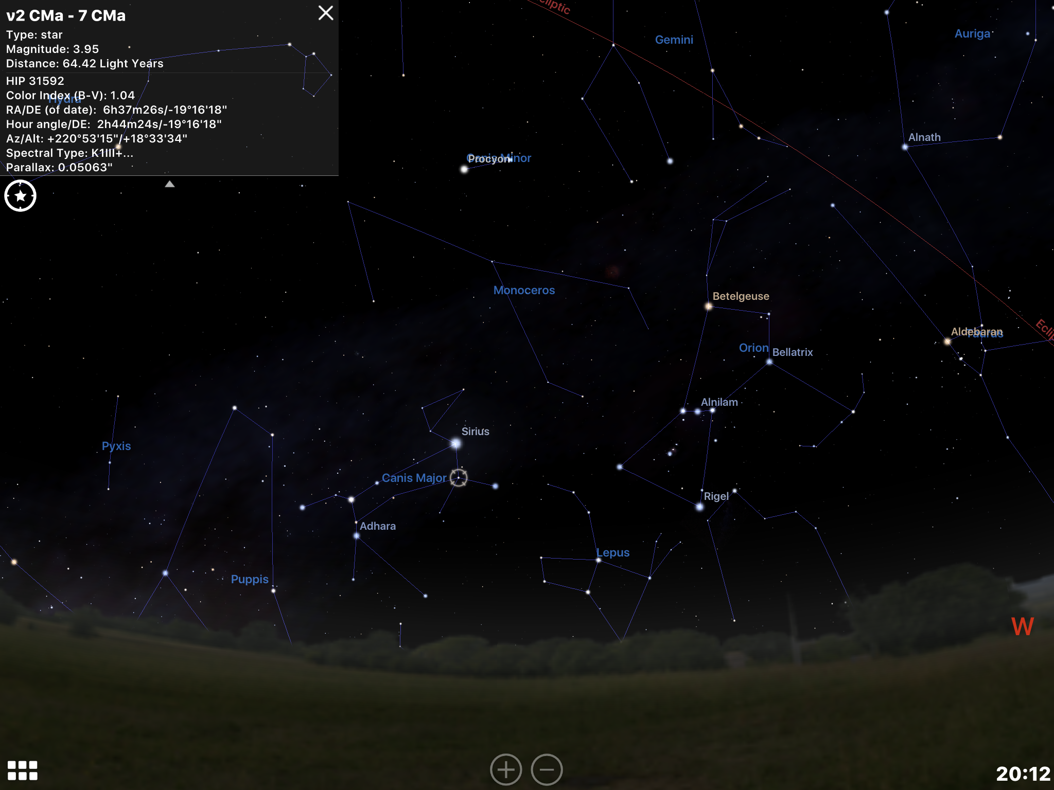 Sirius is the brightest star in the sky and 7 Canis Major is in the same constellation (Canis Major - the big dog). This Life Star is easy to find. Just find Sirius and look a little bit south/down toward the horizon. It’s between and to the left of Sirius and the bright star Mirzam that marks the foot of the big dog. I think of this star as the heart of Orion’s Big Dog.
