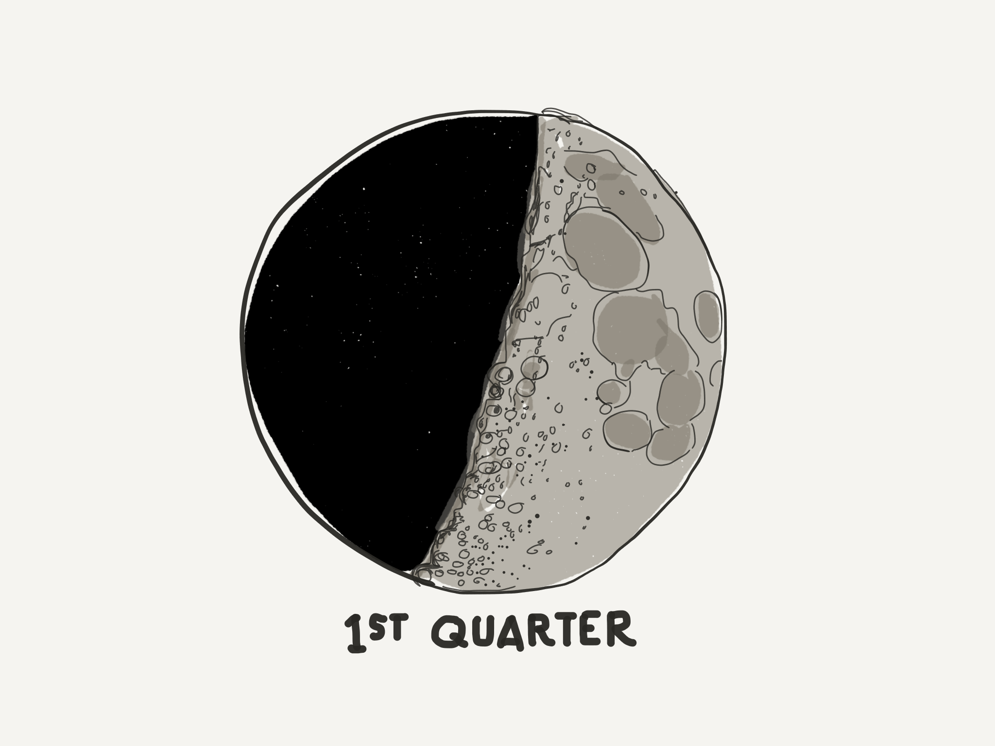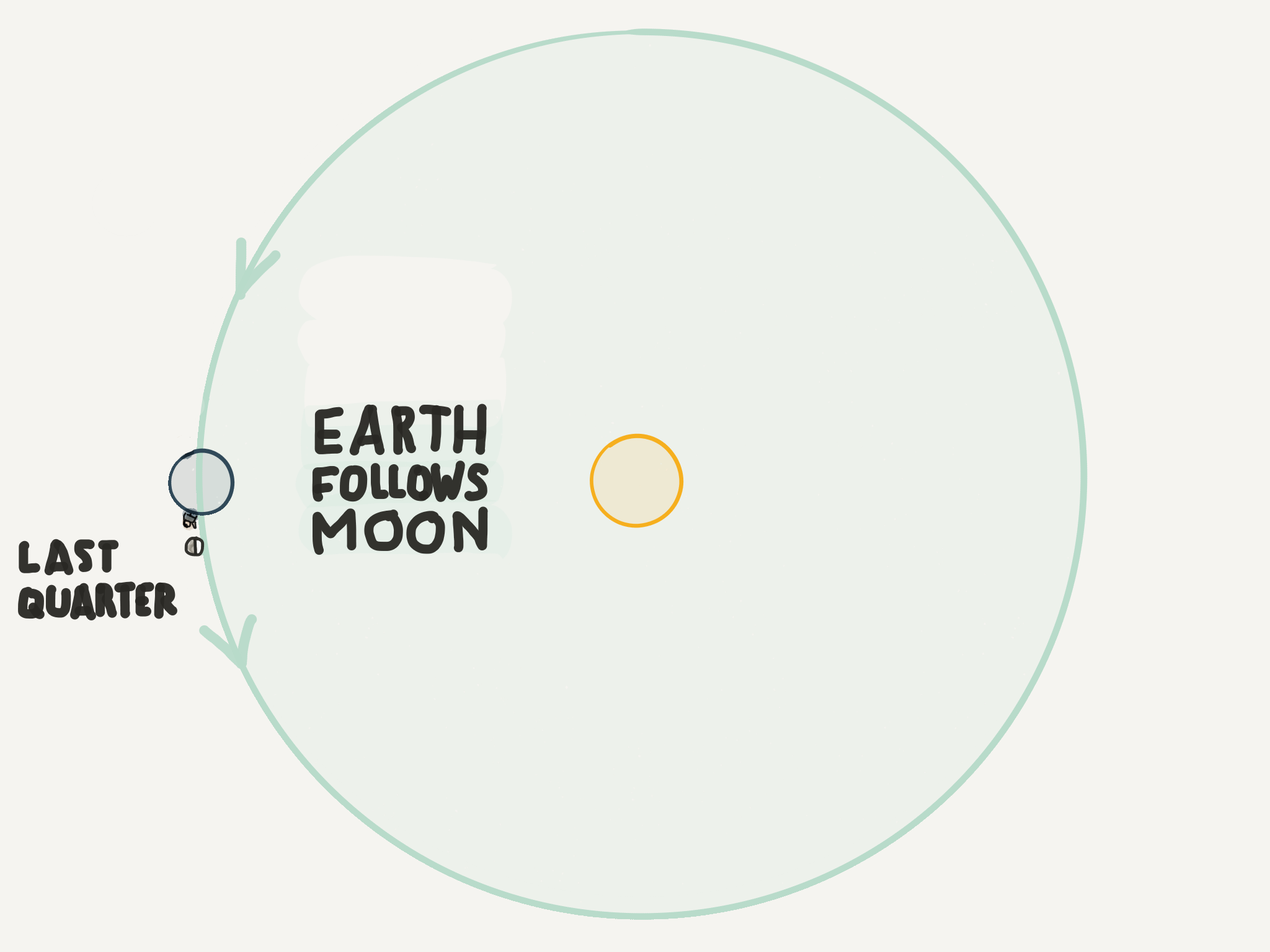 You can use the moon to “see” the Earth’s orbit in the sky and the space beyond. Most people think the full moon is the best moon phase. We get to see the whole glorious sphere lit up full on one side. The full light of the sun brightens the surface of the moon so much that the sunlight reflected off moon makes shadows at night. Other people like the New moon. Maybe it’s because it symbolizes new beginnings, or because the moon is hidden in the glare of the sun like it’s not even there. My favorites are the two half moons - the first quarter and the last quarter. I like these phases because they show us something beyond the moon. And with a little bit of imagination they allow us to see into the depths of space. The half moons are like helpful guideposts that show you the orbit of the earth. Here’s how it works: