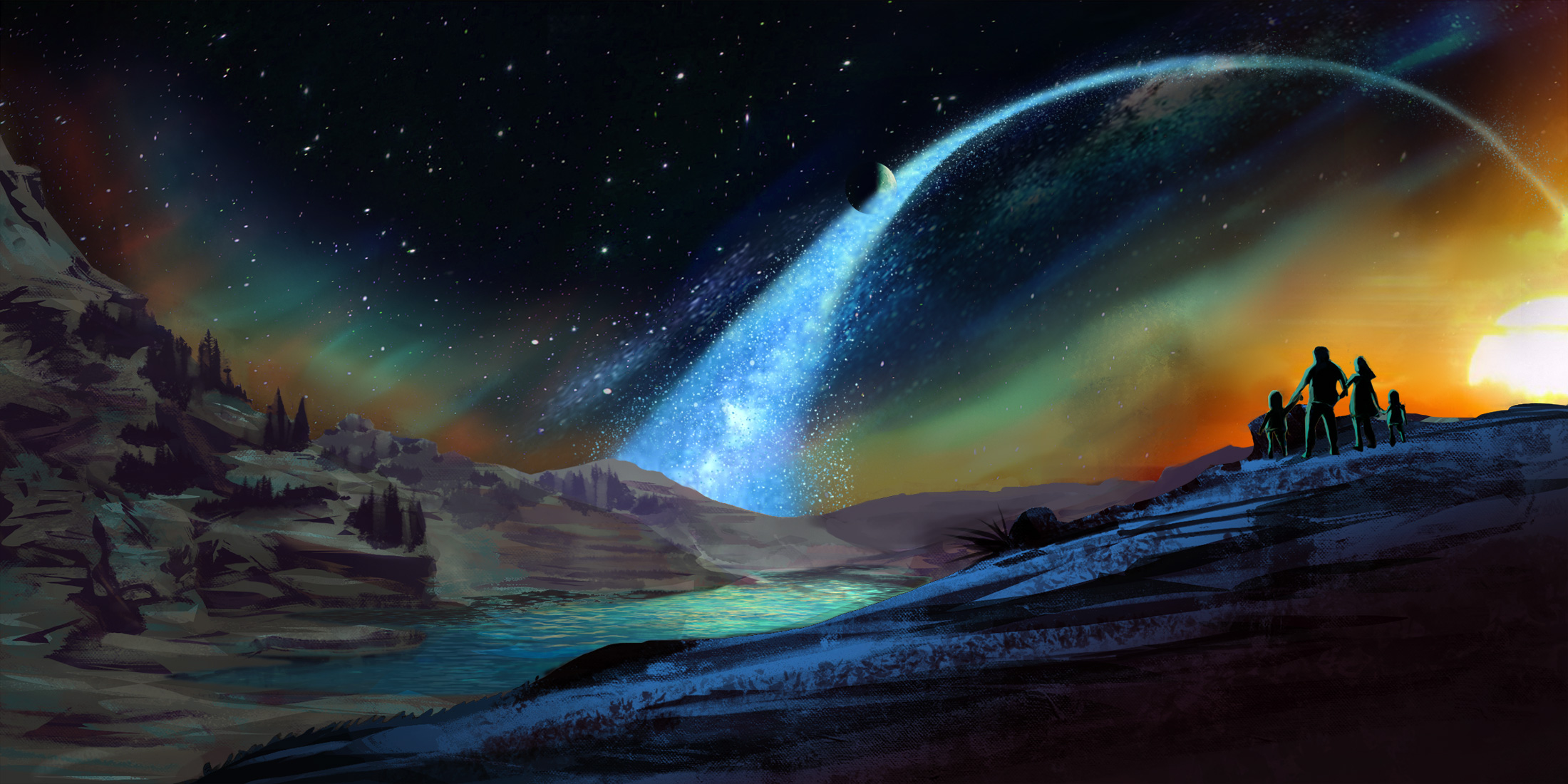 A family views the visible orbit path of the earth.