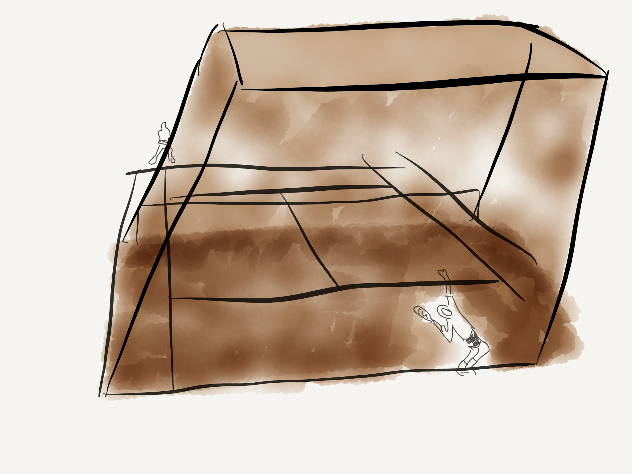 Now, picture a tennis court. And take those 1 meter cubes of sand and cover half of the court with them. Half the court piled 1 meter high with grains of sand. That’s about 100 billion grains of sand. Pile it 10 meters (30 feet) high and you’ve got 1 trillion grains of sand.